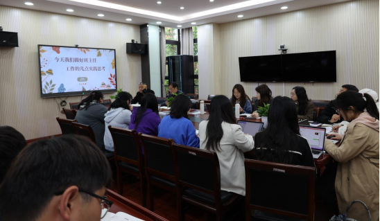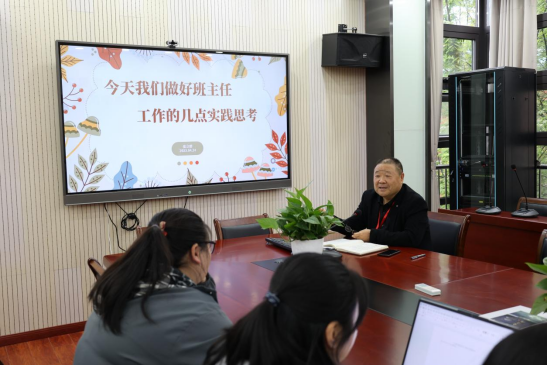 2023年4月24日星期一,张校长为全体见习教师及彭镇中学青年教师做了讲座以“今天我们做好班主任工作的几点实践思考”为主题的讲座。