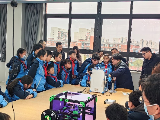 捐赠仪式后,上海市增材制造制造业创新中心安排专业工程师李亚杰在彭镇中学新投入使用的“智造工坊”向在校师生及活动嘉宾现场演示设备功能、讲解操作原理,并与科技兴趣小组的“红领巾”们进行互动解答,现场气氛热烈。